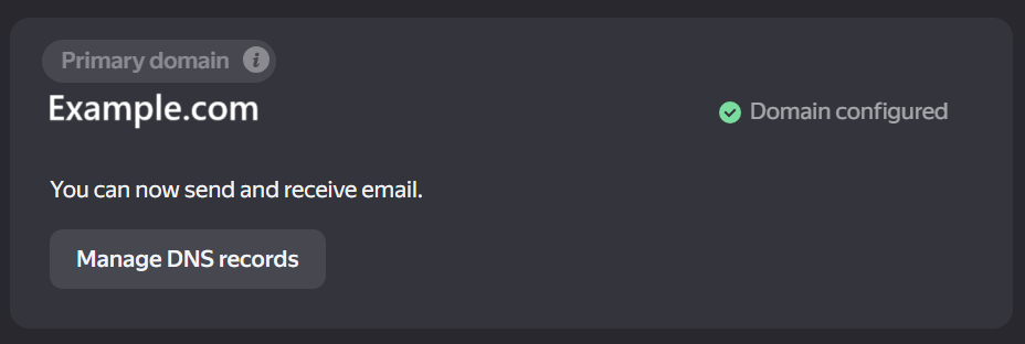 - Check the domain status. If everything's okay, you'll see "Domain configured".