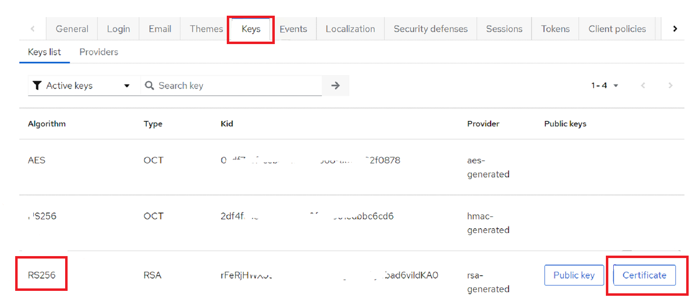 You can also copy the certificate from the Keys tab: