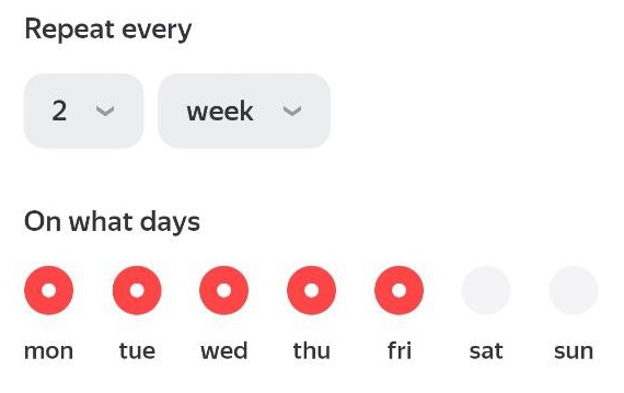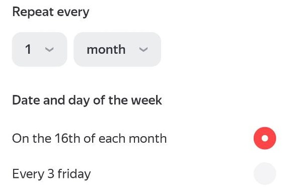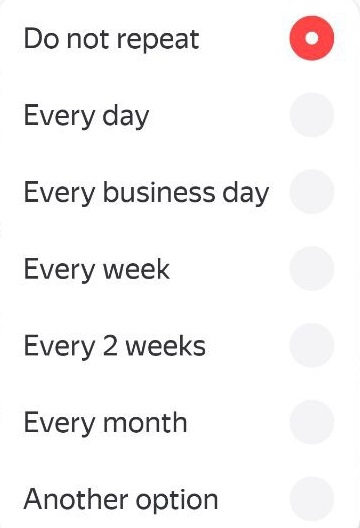 You can create recurring events in the Yandex Calendar app. Both simple and complex schedules are supported: