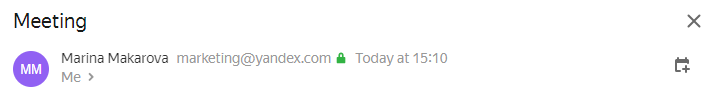 To create an event in Yandex Calendar, open an email and click the calendar icon in the top right corner.