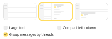 By default, Yandex Mail uses a two-panel interface. The message preview is displayed on a separate page to the right from the list of folders. You can also view a message in a list of messages, which will make it appear over the list.