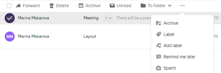 This will help our anti-spam filters work better in your mailbox. You may need to make several complaints about similar unwanted messages for it to work. Learn more about how Yandex Mail fights spam in Yandex Mail Help.