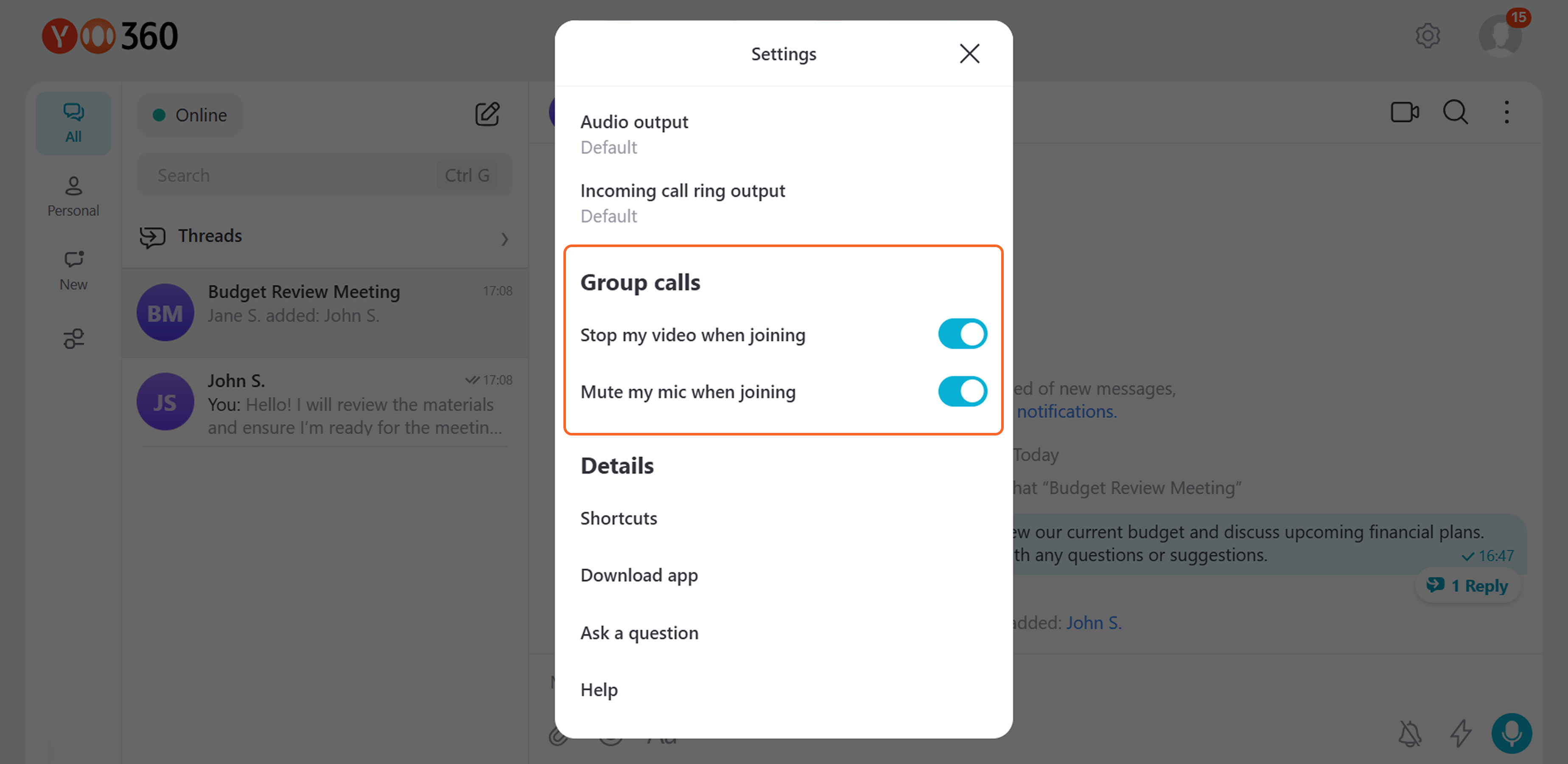 When you call somebody or accept an incoming call in Yandex Messenger for the first time, the app or your browser requests access to your microphone and camera (if it's a video call). You can grant access right away or do it manually later. Unless you do that, you won't be able to make calls using Yandex Messenger.