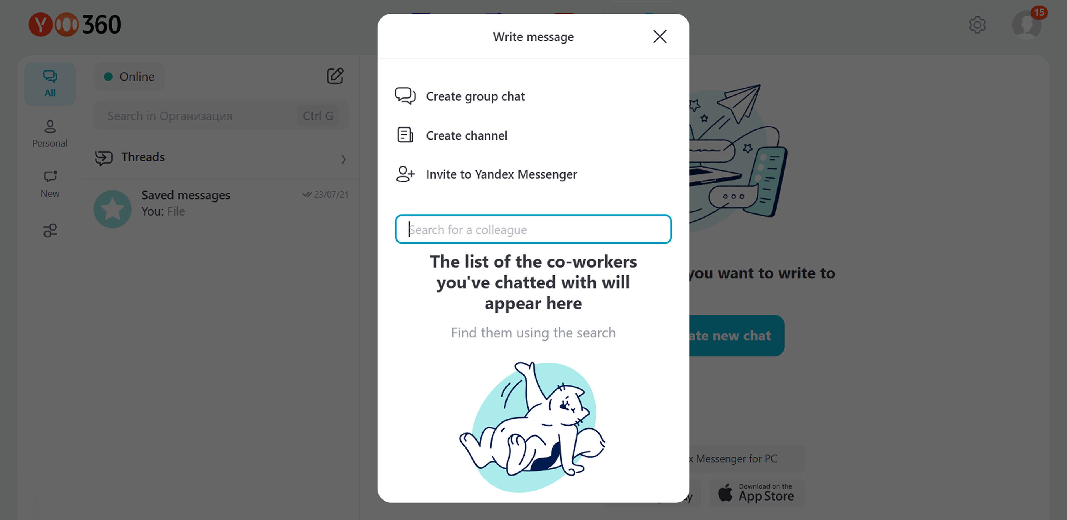 To learn more about how to chat with your colleagues in Yandex Messenger, see the Chats and Calls sections.
