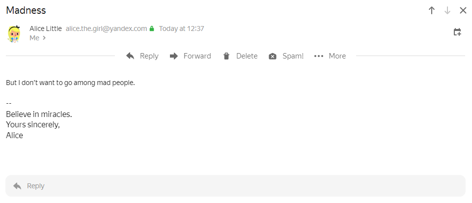 Users of any mail service may come across dangerous situations since not all servers that handle mail delivery meet sender identification requirements. If you receive this type of email, select it and click It's spam! so that Yandex can improve its spam filtration.
