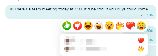 Press a reaction to see who added it and when, to add your own reaction, or to change it.