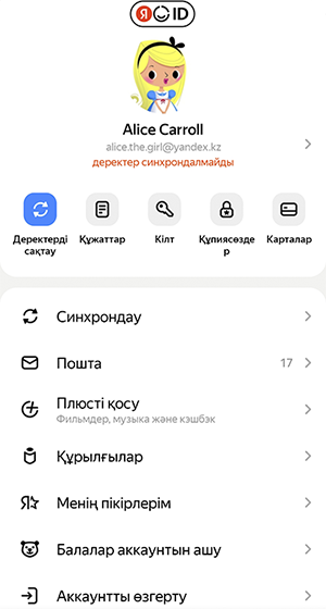 (профиль портреті) — Яндекс ID бетін аша аласыз. -