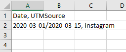 For example, to delete data about an Instagram* ad campaign for the period from March 1 to March 15, fill in the file like this: