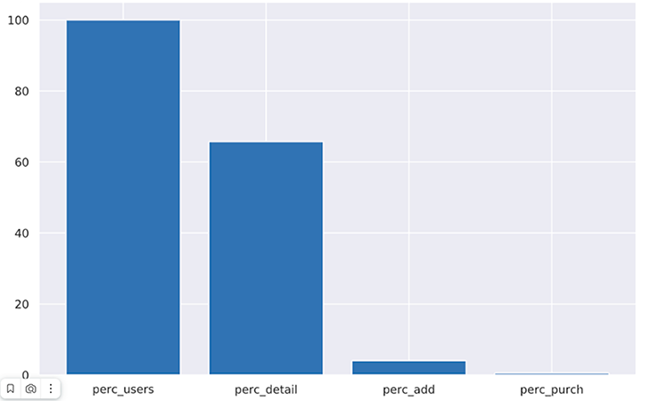 round(step2_users/step0_users*100, 4) as perc_step2, -- % users who viewed products, then added them to the shopping cart
