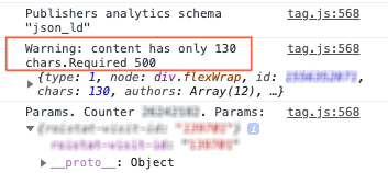 You can get complete statistics for the content with text longer than 500 characters. If there are less than 500 characters in the marked up article, the console warns you about that when checking the micro markup: