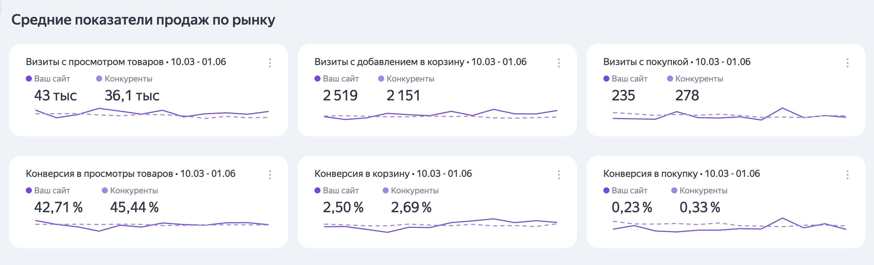 平均市场销售额指标是一款分析工具,用于将您网站的关键销售指标与您最接近的竞争对手的平均表现进行对比。