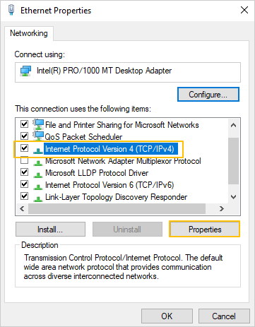 Select Internet Protocol version 4 (TCP/IPv4) → Properties.