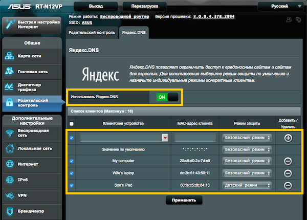 Яндекс DNS встроен в большинство роутеров ASUS. Его можно настроить для отдельных устройств или для всех сразу.