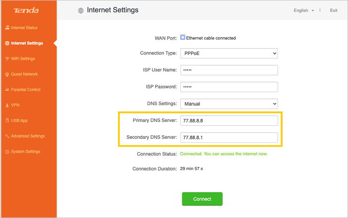 Чтобы настроить Яндекс DNS на роутере Tenda: