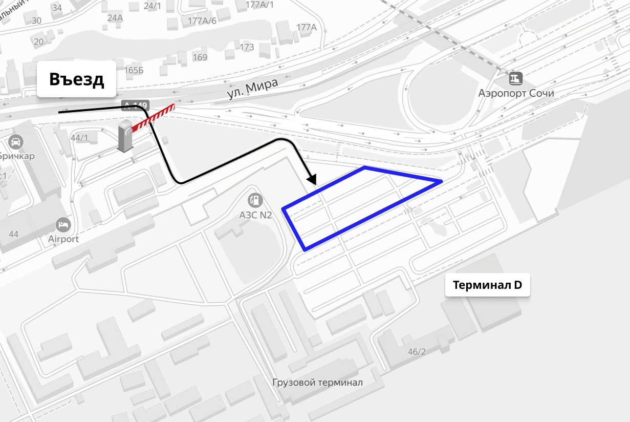 - Перед указателем на грузовой терминал и суточную парковку поверните направо.