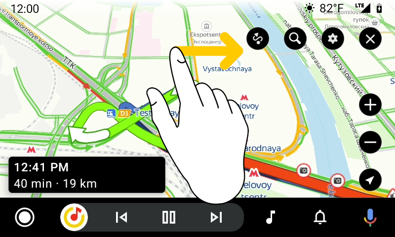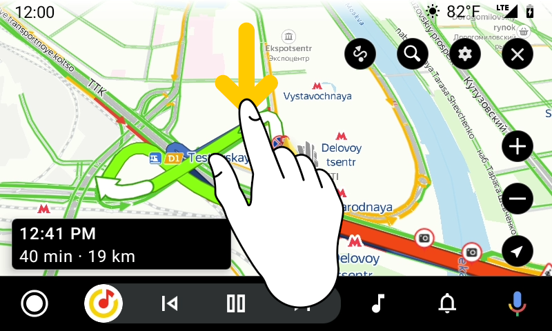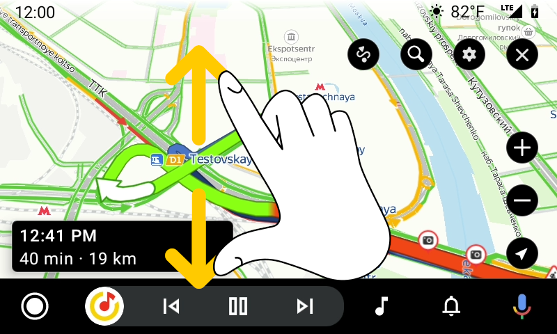 Используйте жесты в режиме Навигатор или при движении по маршруту.