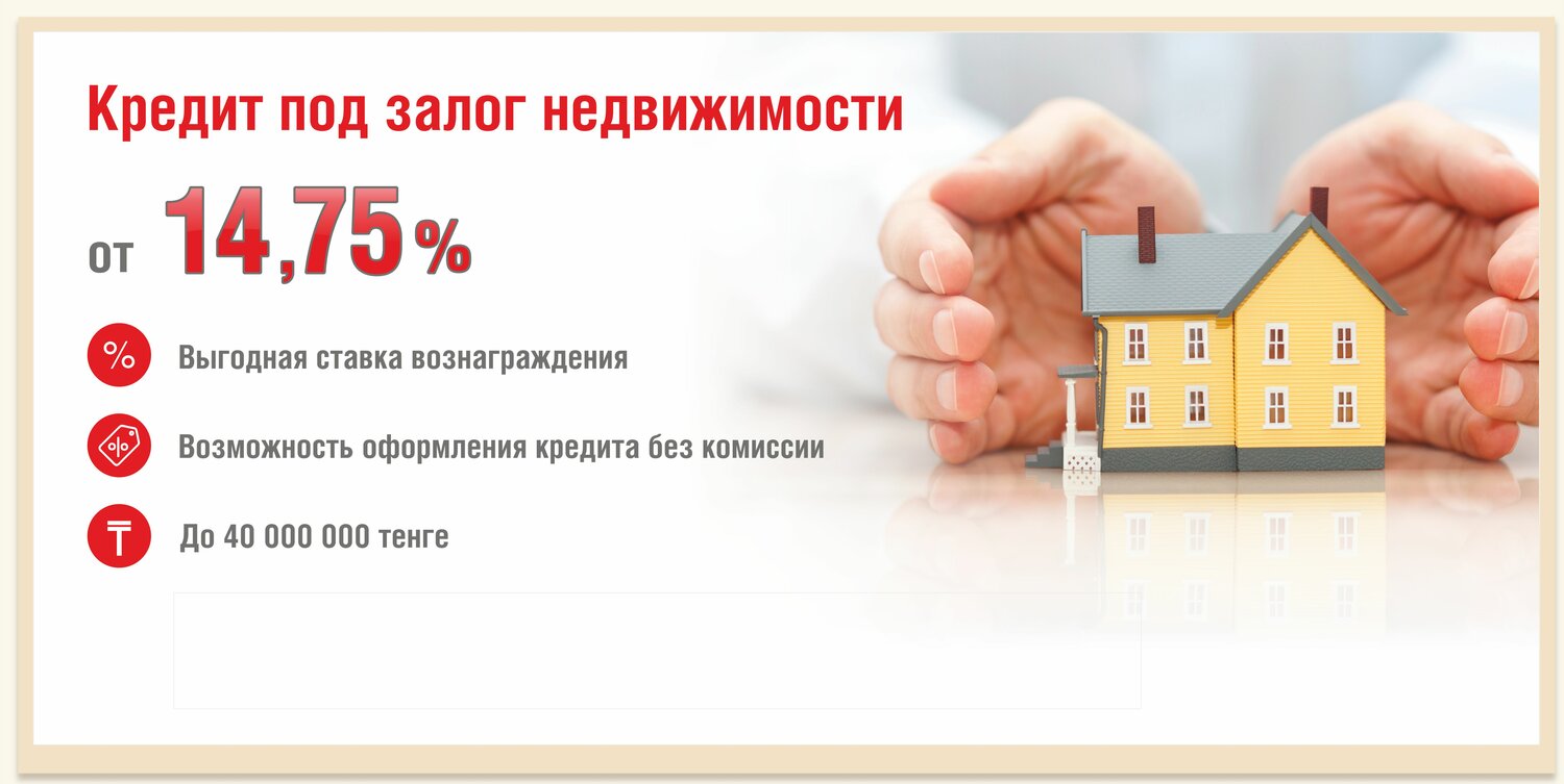 Обеспечение по кредиту: недвижимость в городах Алматы, Нур-Султан (в радиусе 30 км от города), Атырау и Актау (имеются требования к залогу)